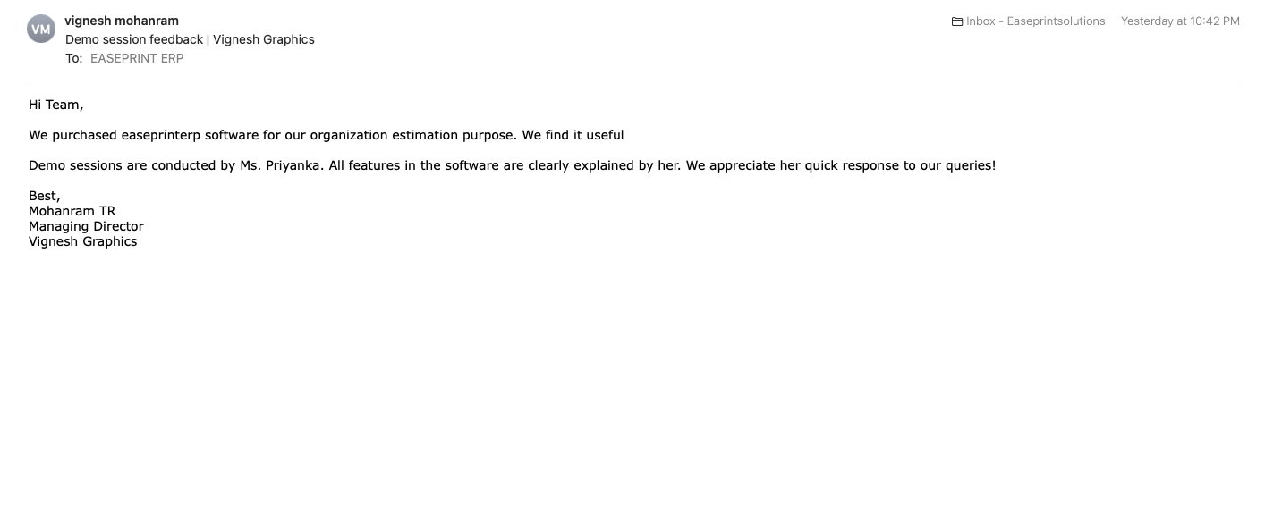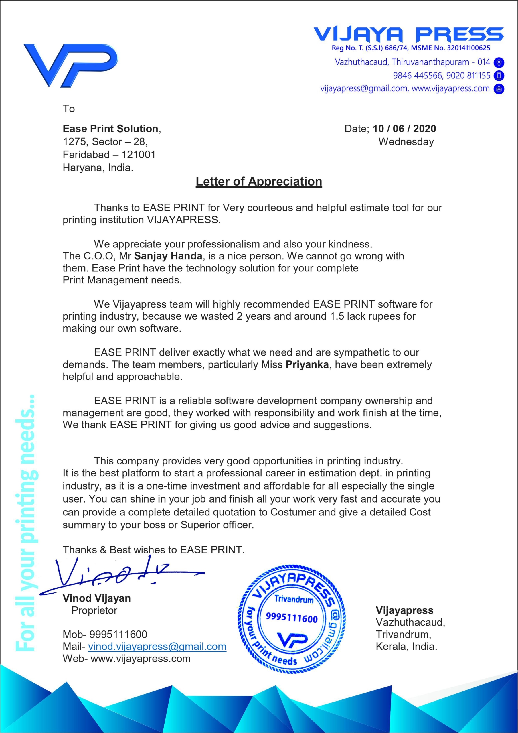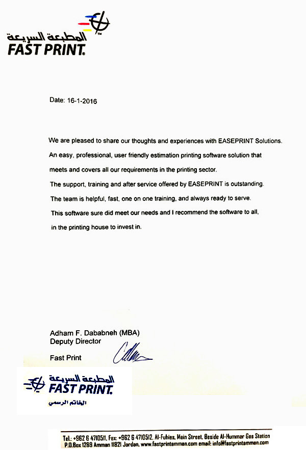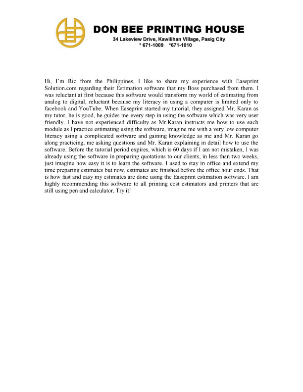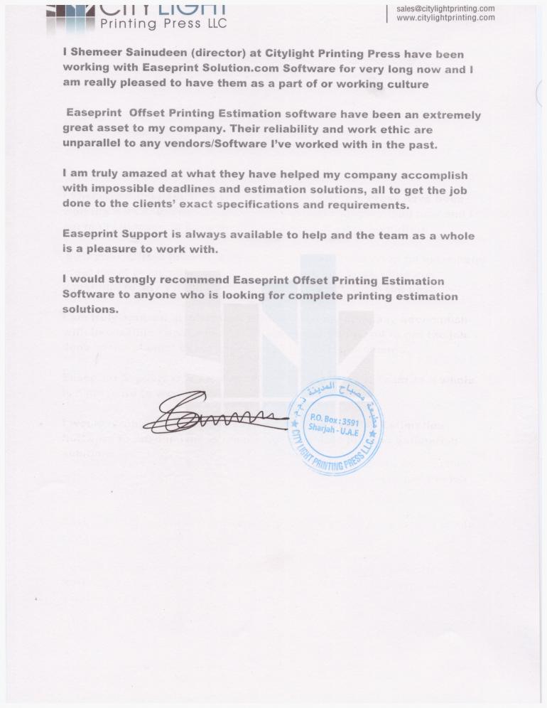 Easeprint provides solutions in the field of Offset Printing, to fulfill the needs for quick Print Management. It is an advance, easier, quicker, and accurate way of generating quotations/Job tickets/Ordering material/print floor /analysis print reports. In short helping and assisting at every level of the printing process from the first step of Estimating till the final stage of the finished product. With more than two decades of experience in the Printing Industry, the developer is well versed in the needs and procedures of the printing process. Have come across the frustration of delay, mistakes, irregularities, losses due to common MANUAL WAY of handling the jobs and working on software developed by an outsider of the trade, the developer then decided to develop Easeprint to get rid of problems like much time involved in estimating manually, internal challenges of training the staff, to achieve the uniform estimates. This tool has been designed for small/medium print houses to guard them against lots of time involvement, paperwork, dependence on staff, checking and maintaining stock reports, for print management by replacing total paper practice. The Easeprint software is very user friendly and can be made operational in minutes once you in feed the database. We believe that Easeprint will be proved the best program to ease away the daily and common but big problems of the printing industry and will do wonders.